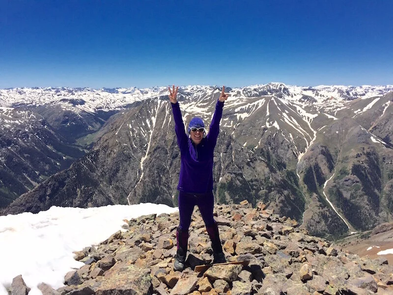Sarah Maurer on the summit of Sunshine Peak